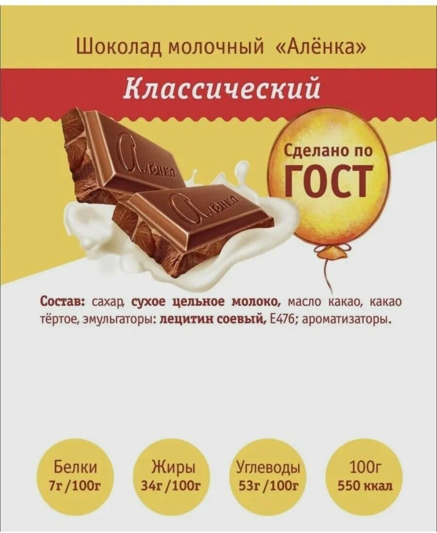 СохранитьШоколад молочный Аленка 15 шт * 90 г Красный Октябрь/Россия интересное: