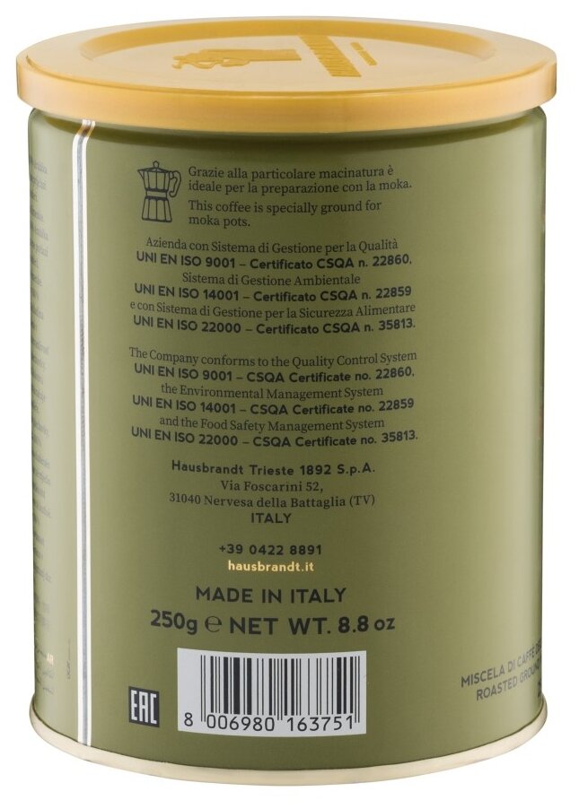 Купить Кофе Hausbrandt молотый Decaffeinato 250 г в ж/б без кофеина.