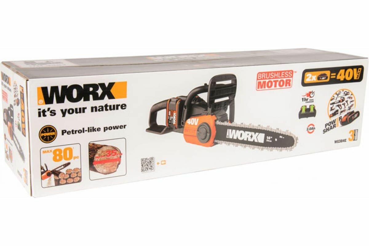Ниже Вы можете прочитать отзывы на Цепная пила аккумуляторная WORX WG384E.9, 40В, 35 см, бесщеточная, без АКБ и ЗУ, ознакомится с подробными характеристиками, посмотреть интересные обзоры и фотографии на Цепная пила аккумуляторная WORX WG384E.9, 40В, 35 см, бесщеточная, без АКБ и ЗУ.