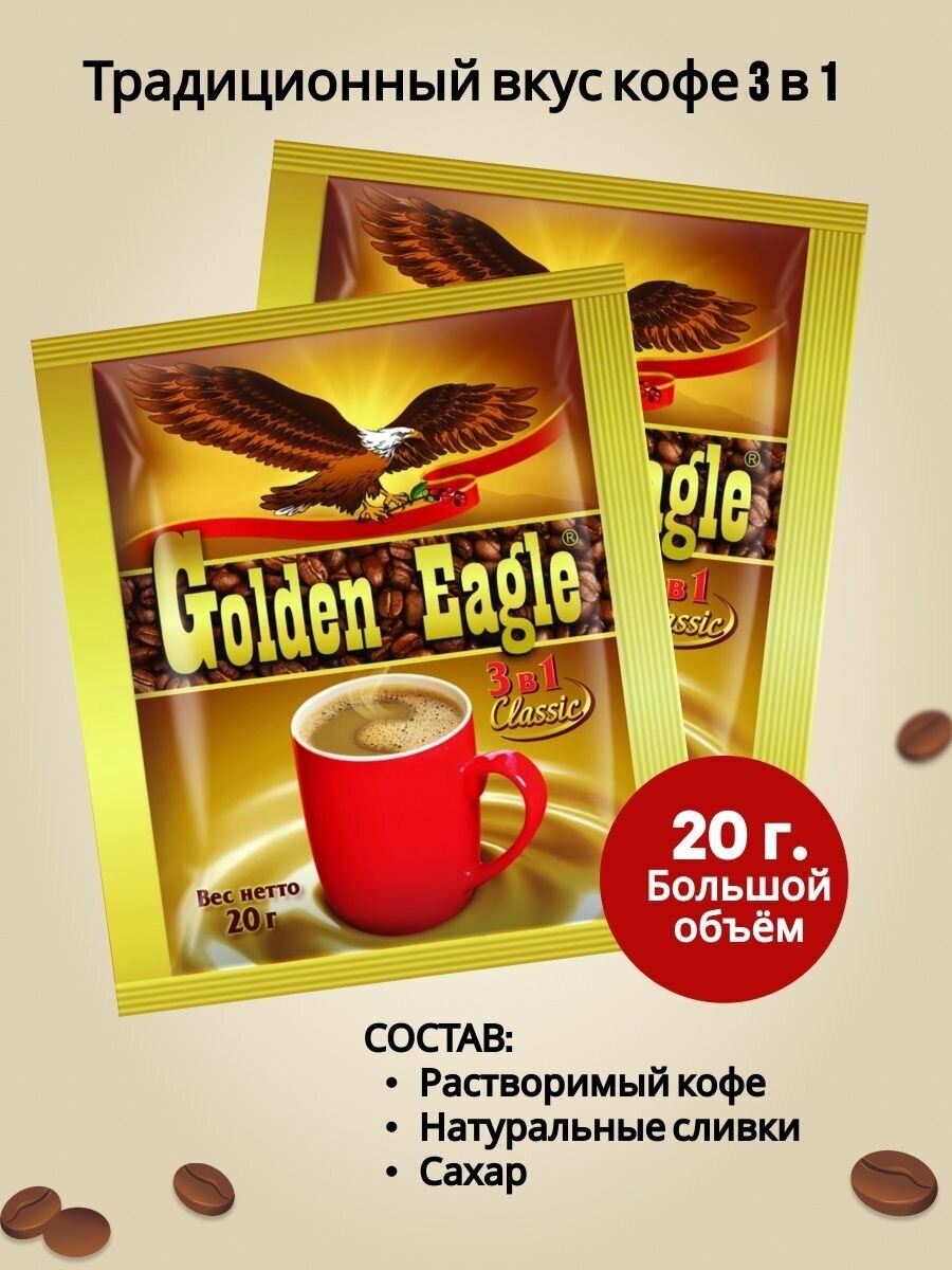 Растворимый кофейный напиток 3 в 1 "Golden Eagle Classic", 50 пакетиков по 20 г