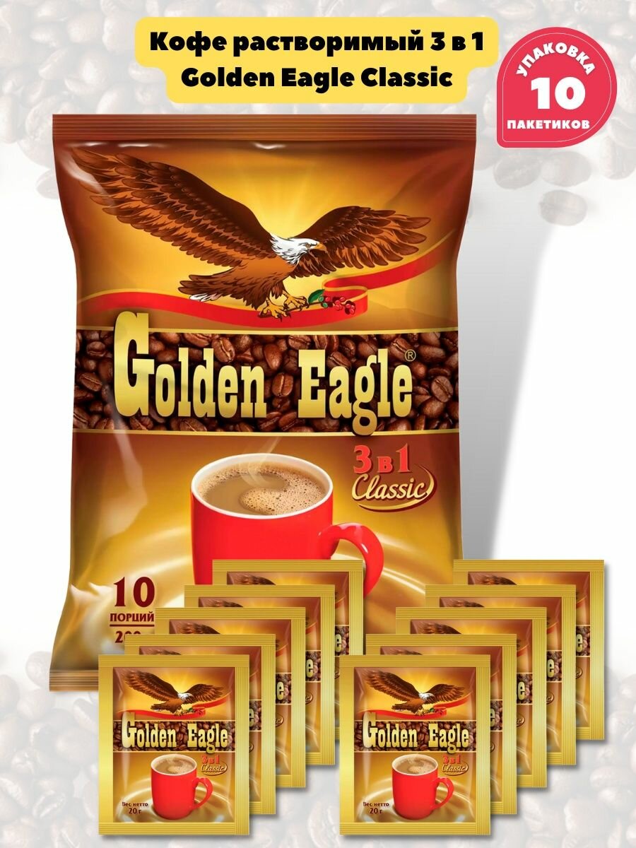 Кофе растворимый Golden Eagle Classic, 3 в 1, 10 пакетиков