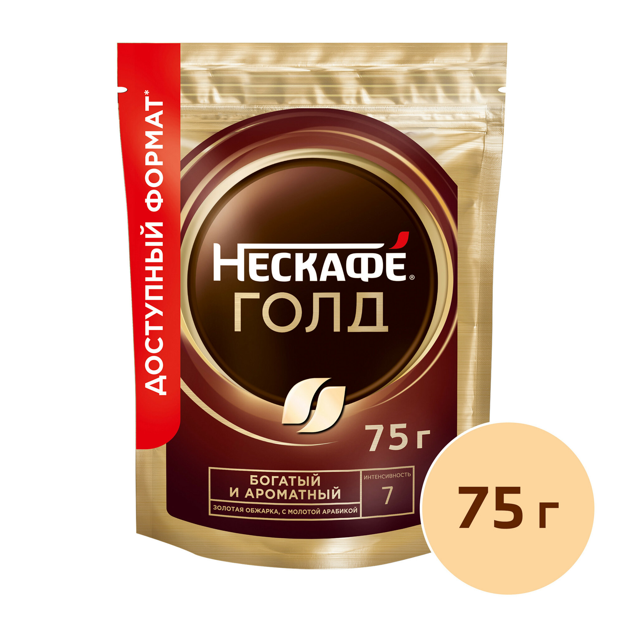 Кофе растворимый Nescafe Gold сублимированный с добавлением молотого, пакет, 75 г