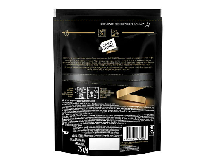 CARTE NOIRE кофе натуральный растворимый сублимированный пакет 75г