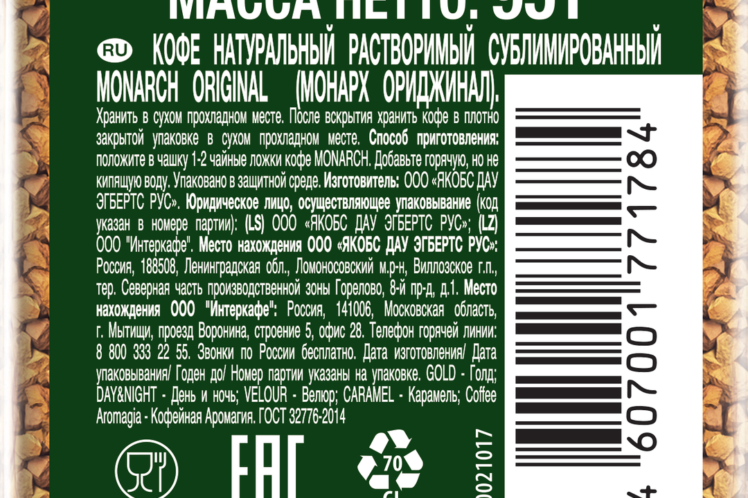 СохранитьКофе растворимый Monarch Original, стеклянная банка, 95 г интересное: