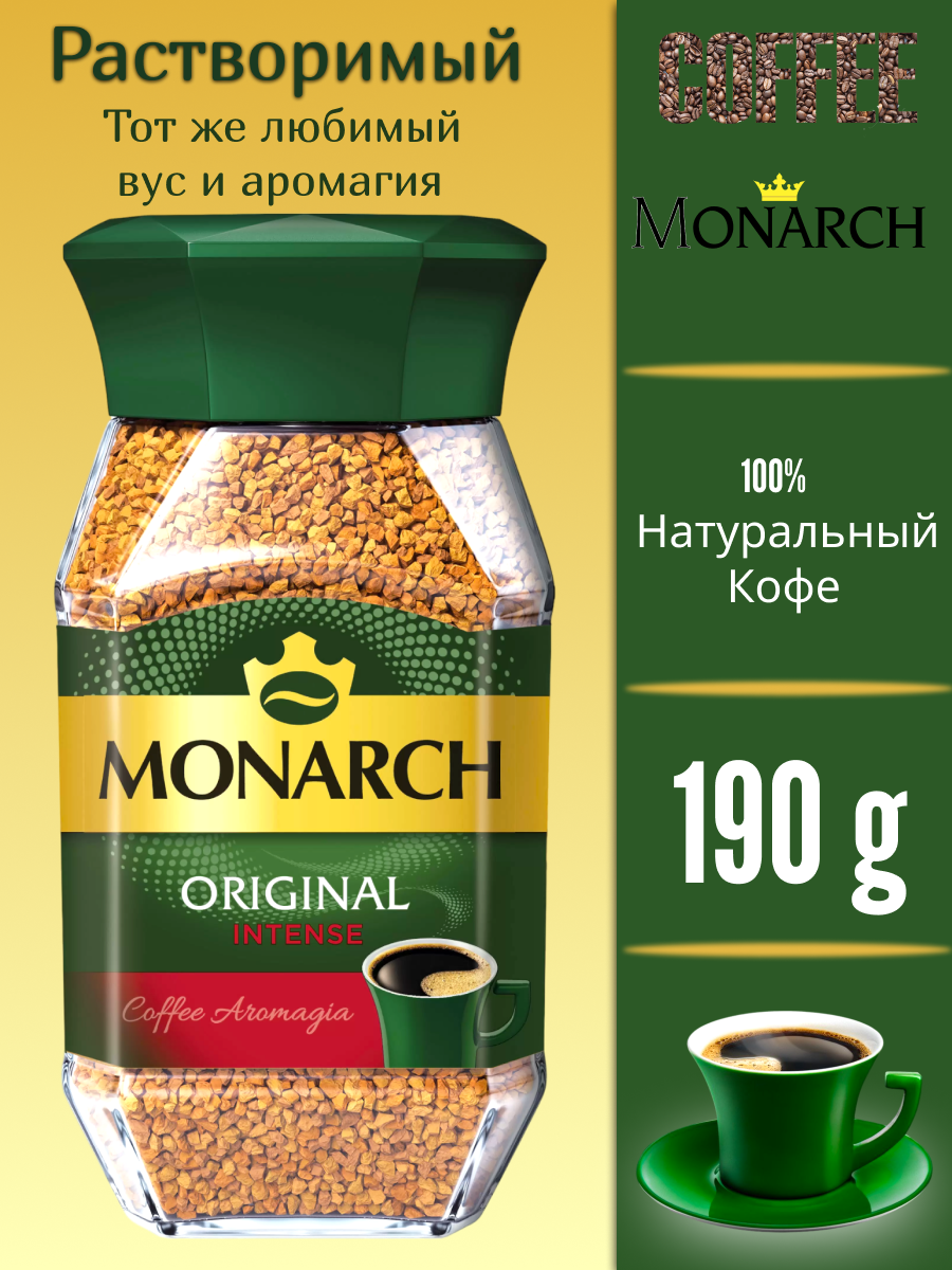 Кофе растворимый монарх интенс (Monarch Intense), стеклянная банка, 190 г