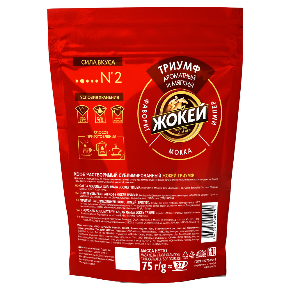 Кофе "Жокей" Триумф, растворимый, сублимированный, мягкая упаковка, 75 г