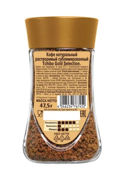 Кофе растворимый TCHIBO Gold Selection натуральный сублимированный, ст/б, 47,5г