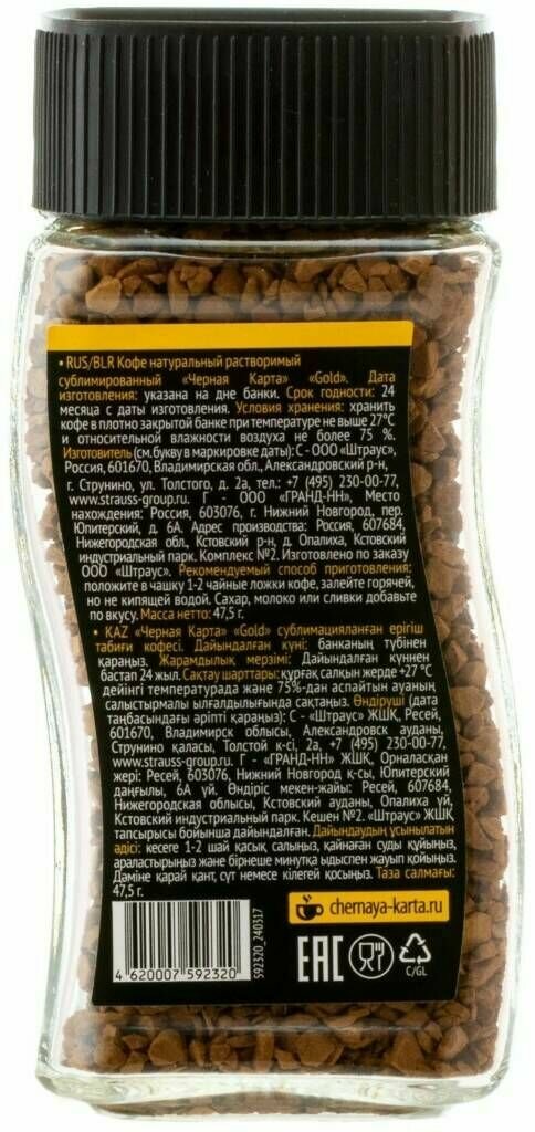 Кофе Черная Карта Gold растворимый сублимированный, 95 г
