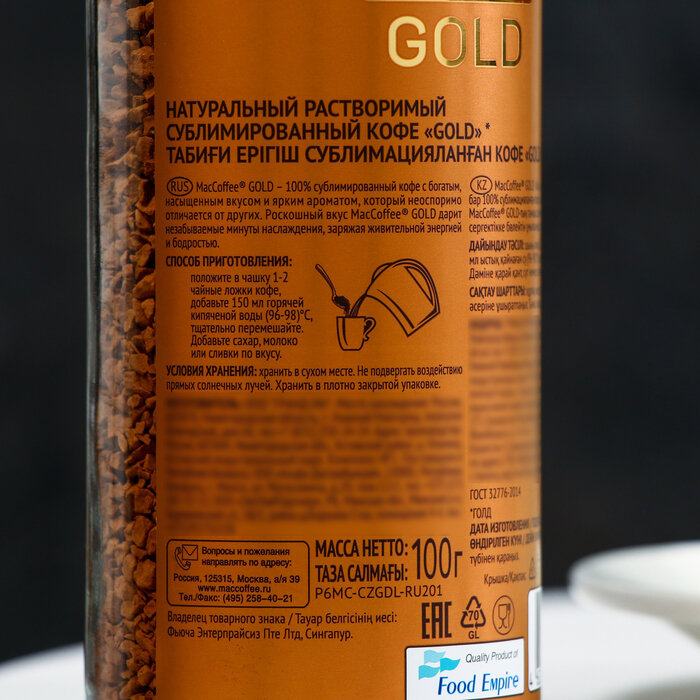 Кофе натуральный растворимый сублимированный "MacCoffee Gold", ст/б 100г