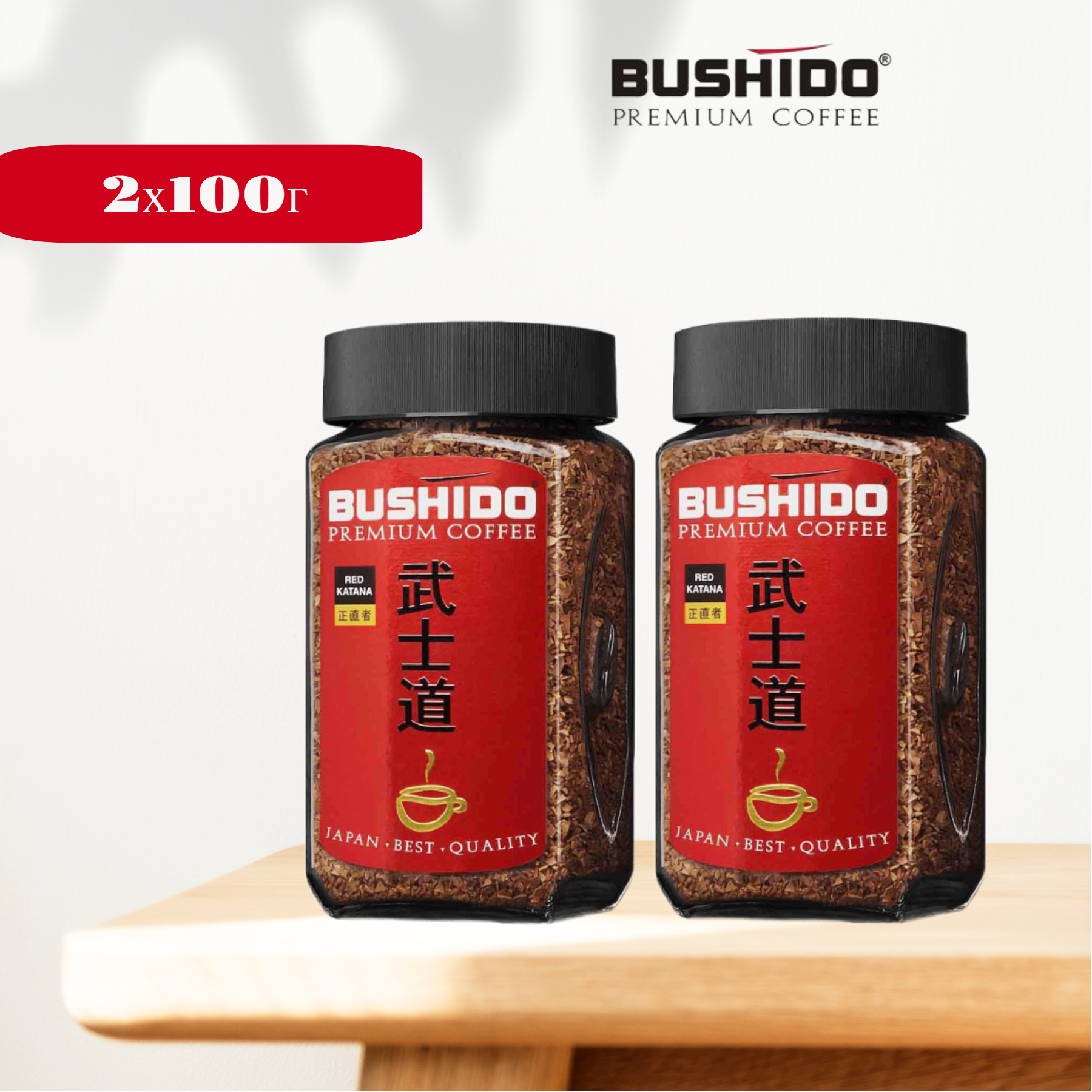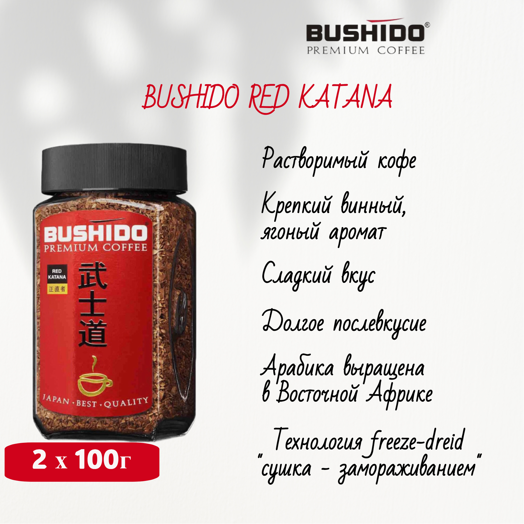 Кофе растворимый Bushido Red Katana, стеклянная банка, 2 уп. по 100 г