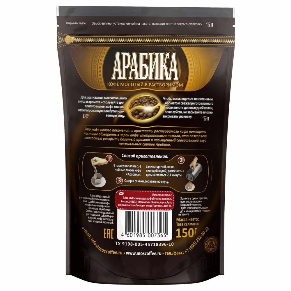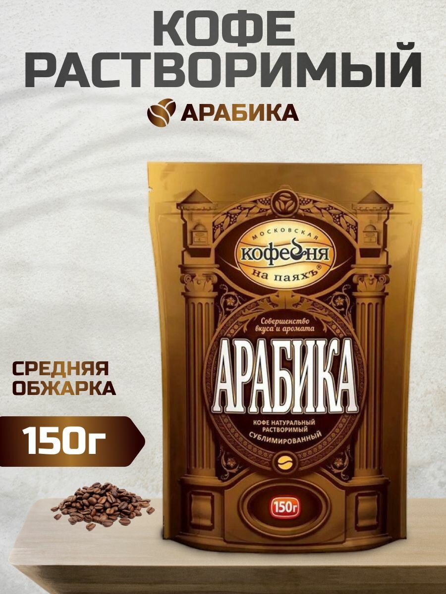 Кофе растворимый Московская кофейня на паяхъ Арабика с молотым кофе, пакет, 150 г