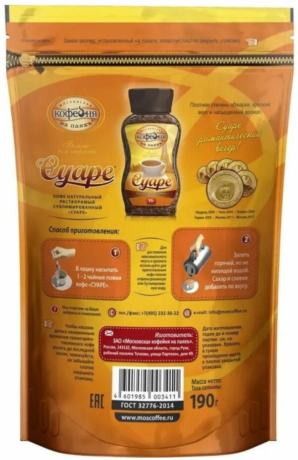 Московская кофейня на паяхъ Суаре кофе растворимый, пакет 190 г