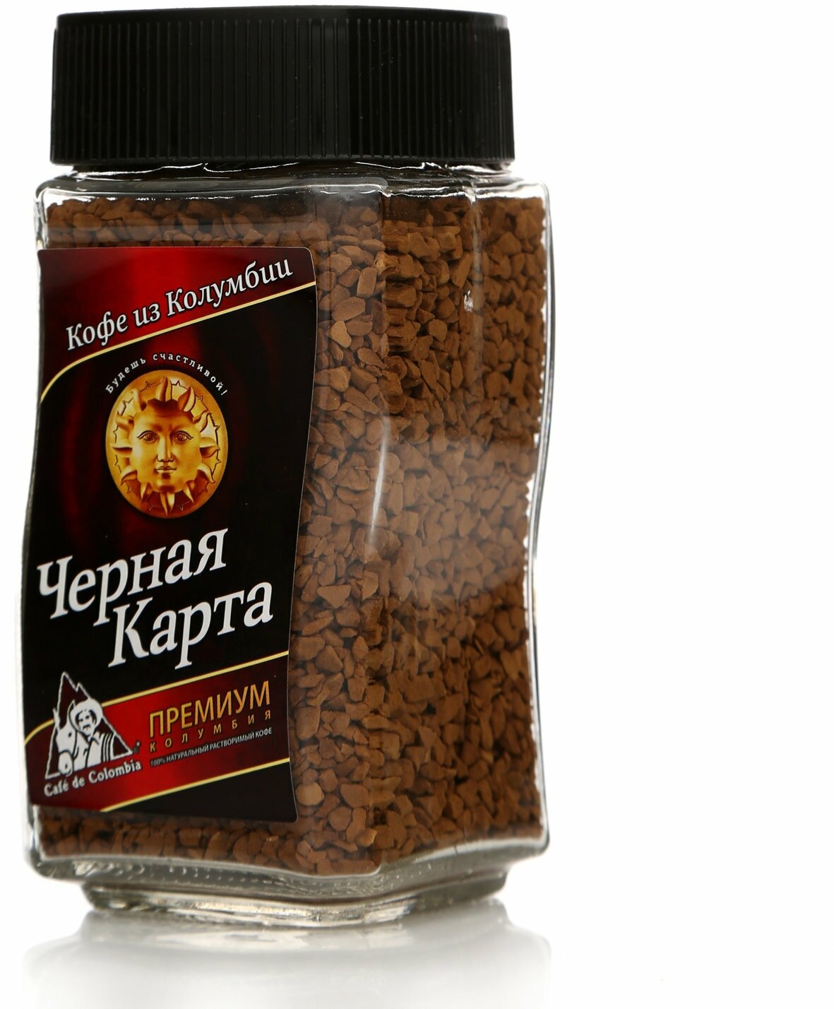 Кофе растворимый Черная Карта Премиум Колумбия сублимированный, стеклянная банка, 95 г