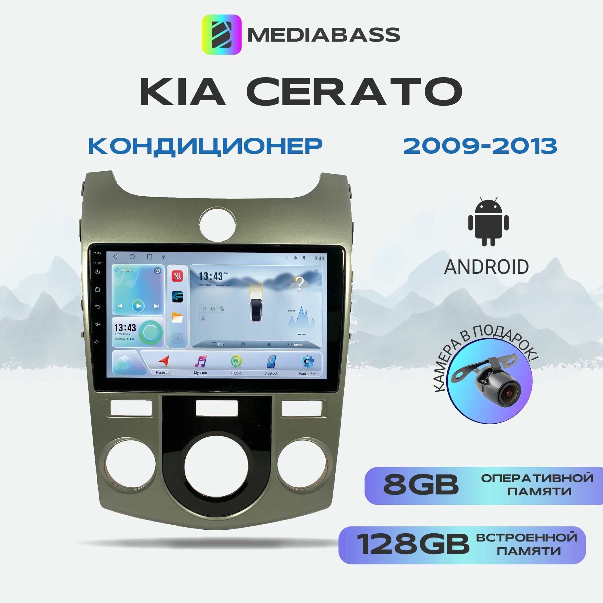Купить Автомагнитола Mediabass KIA Cerato 2009-2013 Кондиционер, Android 12, 8/128ГБ, 8-ядерный процессор, DSP, 4G модем, голосовое управление, чип-усилитель TDA7851, 4G LTE / Киа Церато