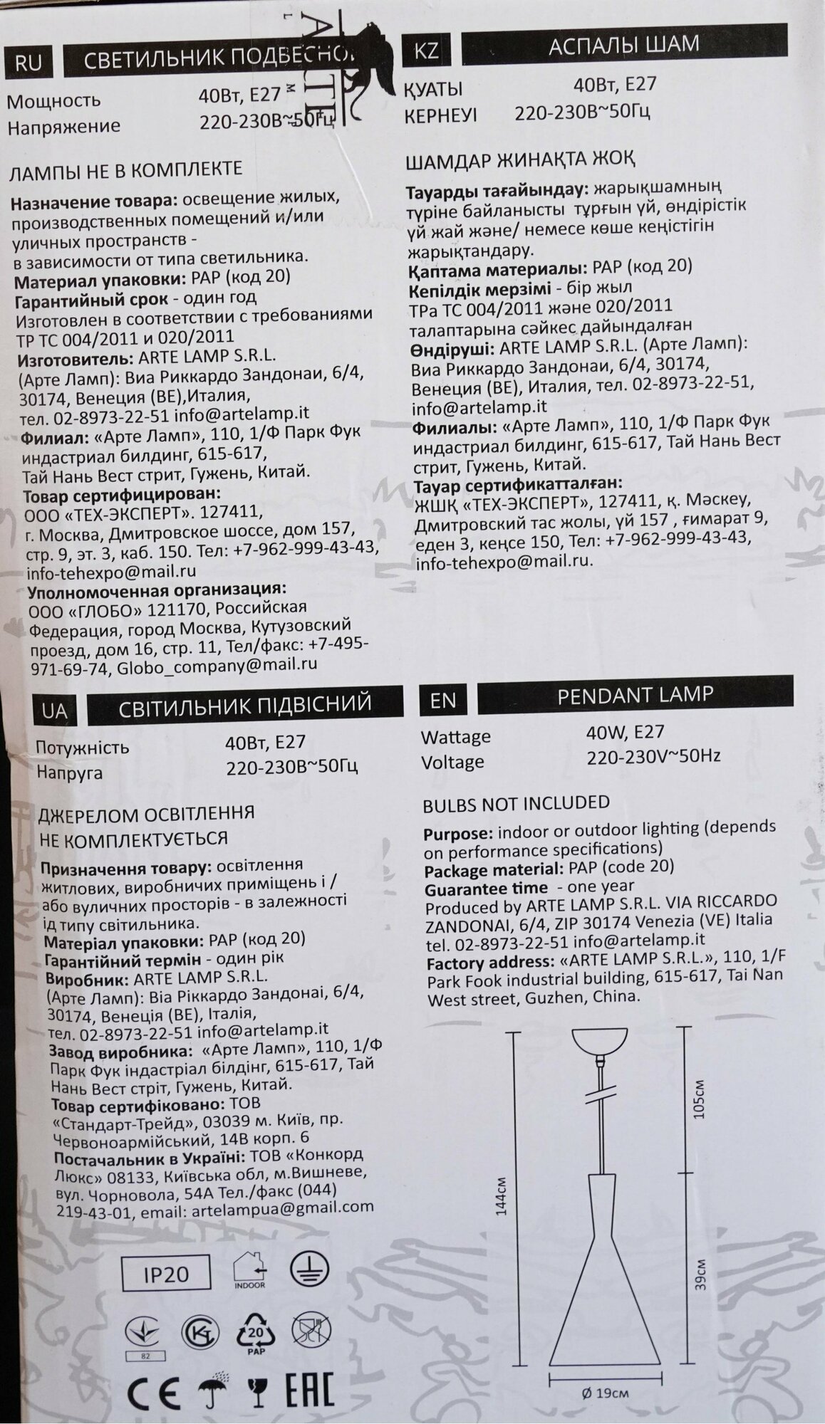 | Производитель | Arte Lamp |