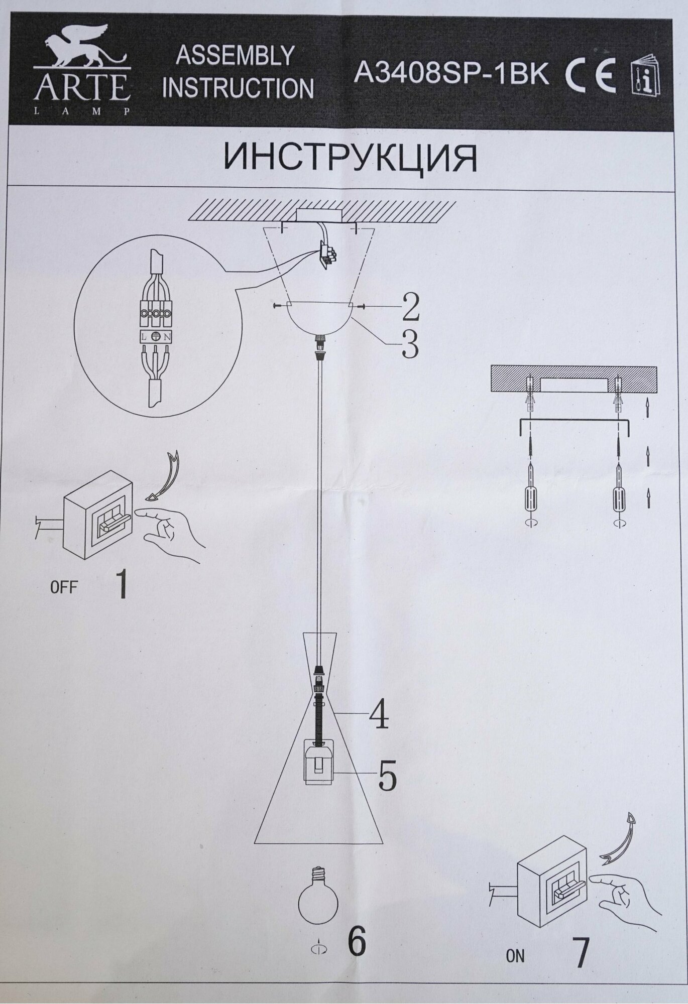 ARTE Lamp #ARTE LAMP A3408SP-1BK светильник подвесной