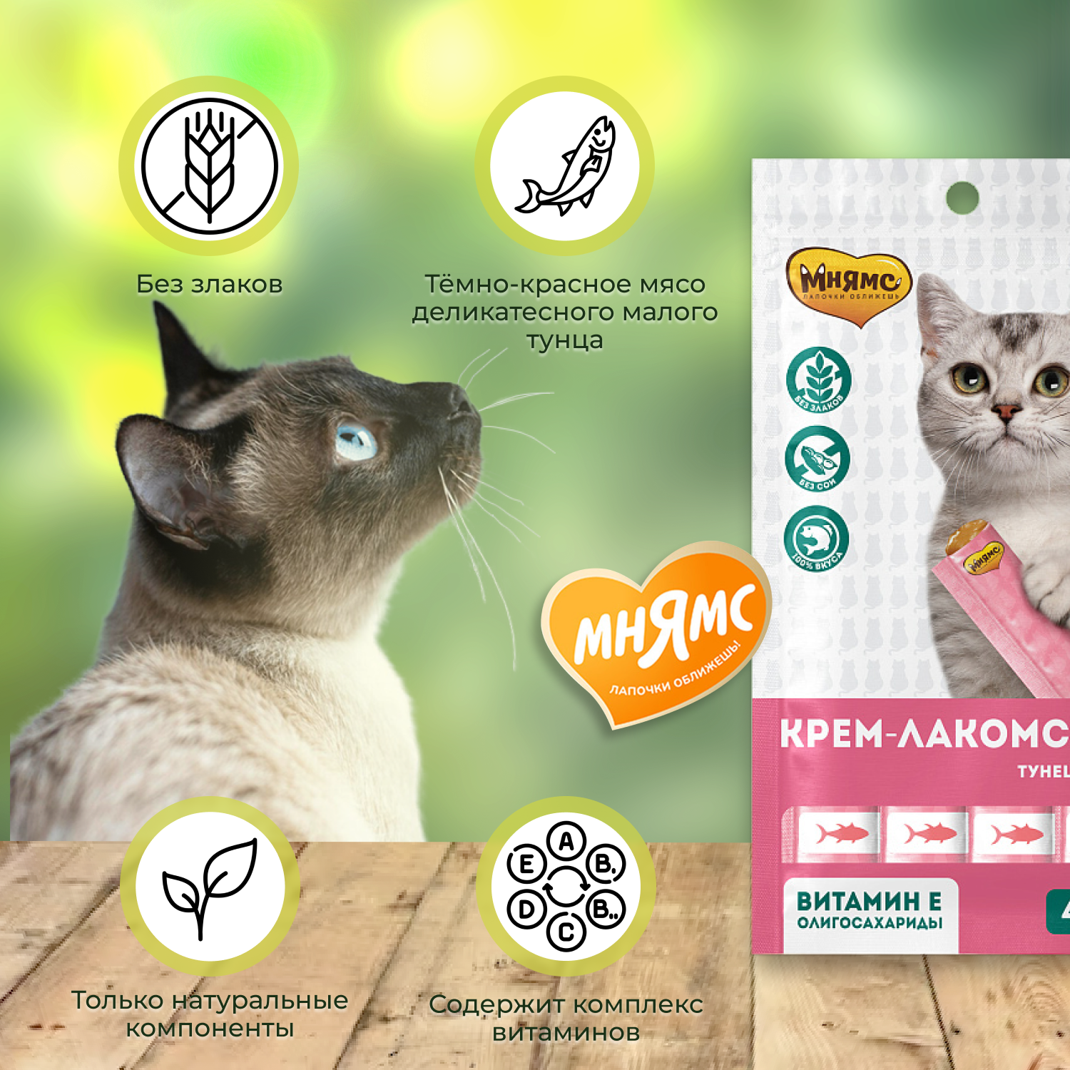 Мнямс, Крем-лакомство для кошек с тунцом Кацуо 15г, 6 упаковок