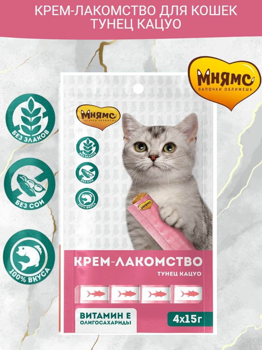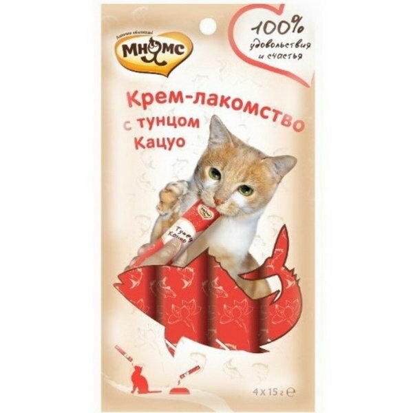 Мнямс, Крем-лакомство для кошек с тунцом Кацуо 15г х 4 штуки