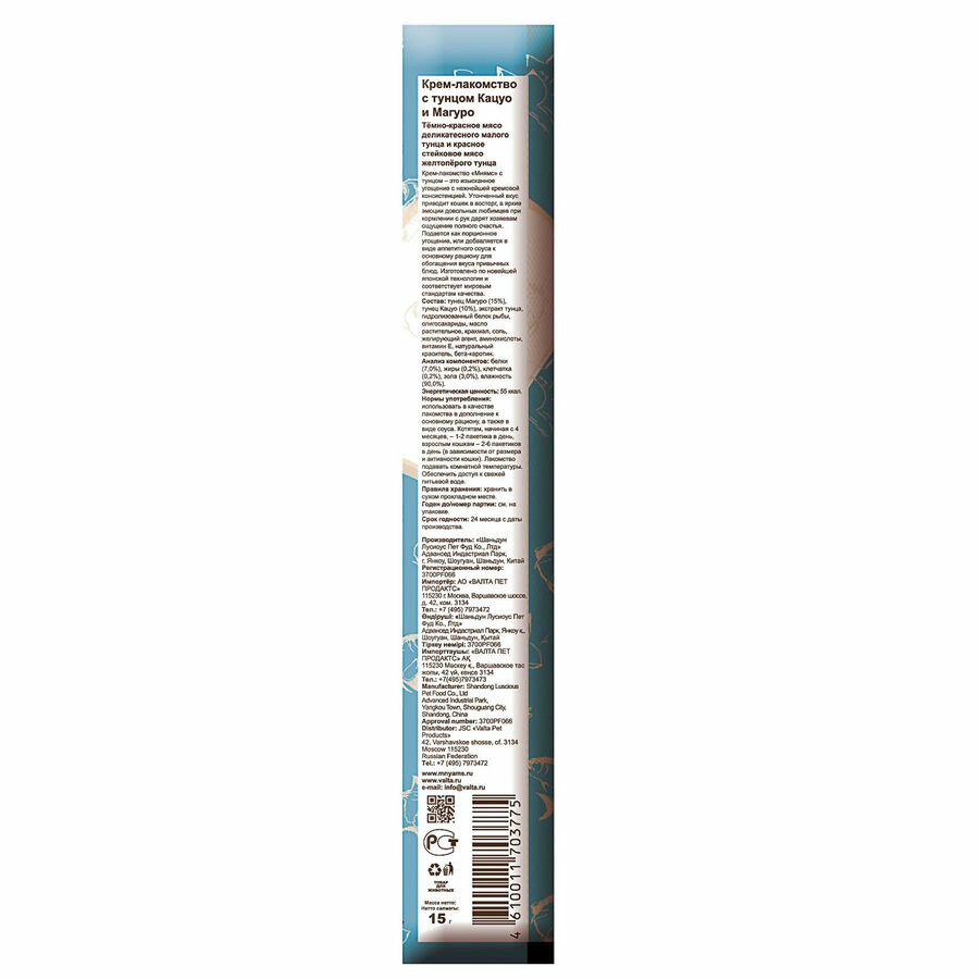 Мнямс, Крем-лакомство для кошек с тунцом Кацуо и Магуро 15г, 12 упаковок