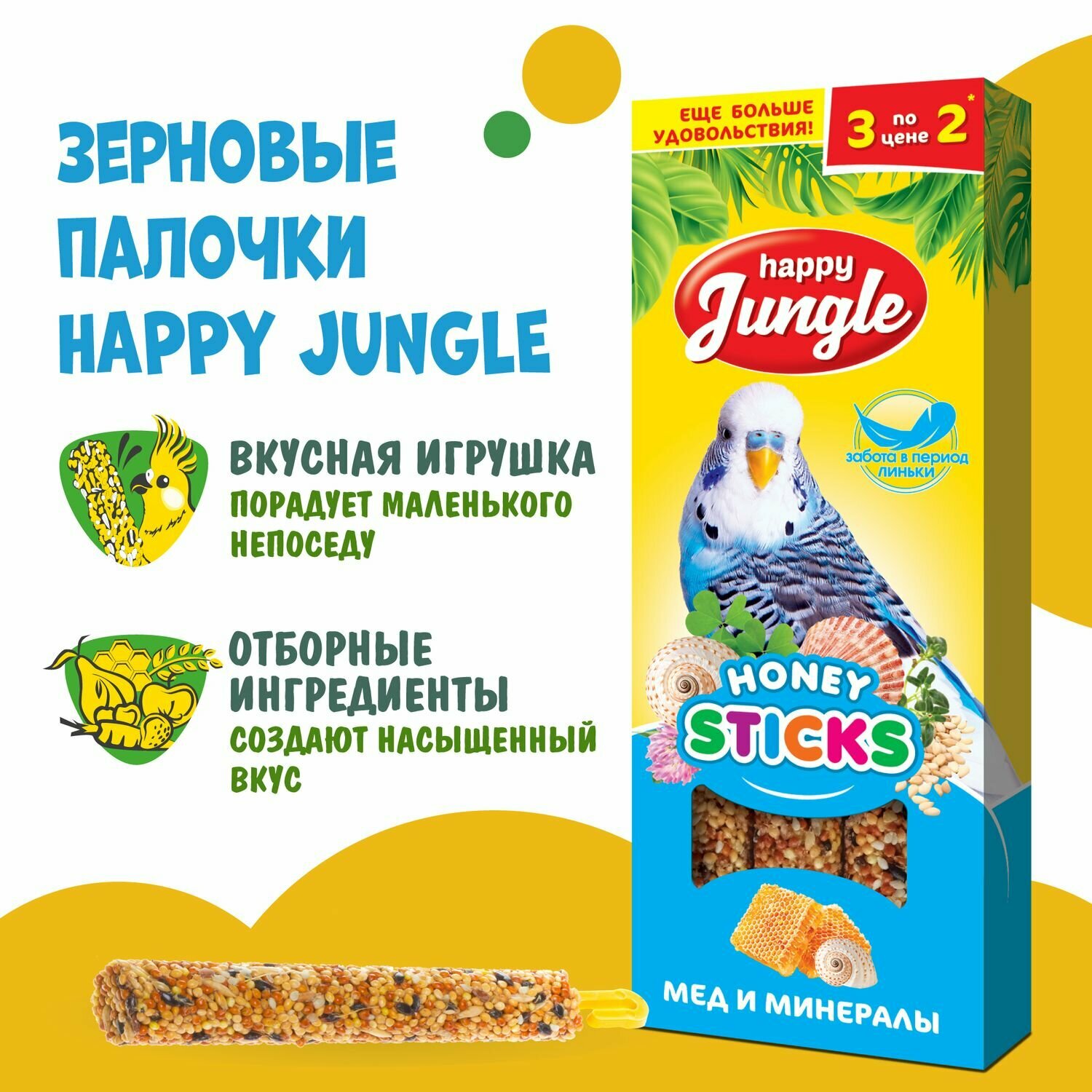 Палочки для птиц Happy Jungle мед минералы 90г 3шт j201