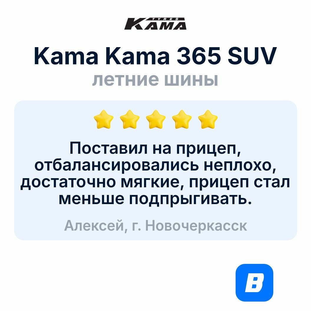 СохранитьЛетние шины Kama Kama 365 SUV 215/65R16 102T интересное: