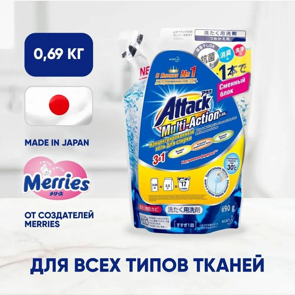Гель для стирки Attack Multi‐Action, 0.69 л, 0.69 кг, дой-пак