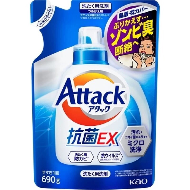Купить Жидкое средство для стирки Attack Antibacterial EX с антибактериальным эффектом 690 г запасной блок