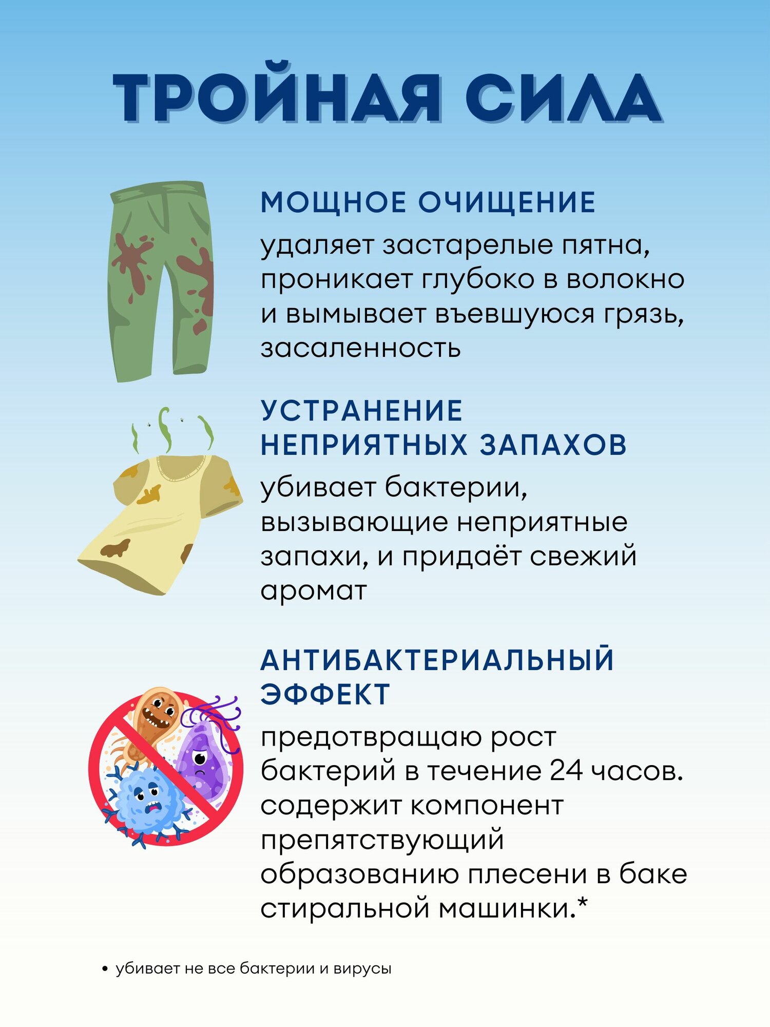 | Плюсы: | отлично отстирывает одежду, качественно и бережно |