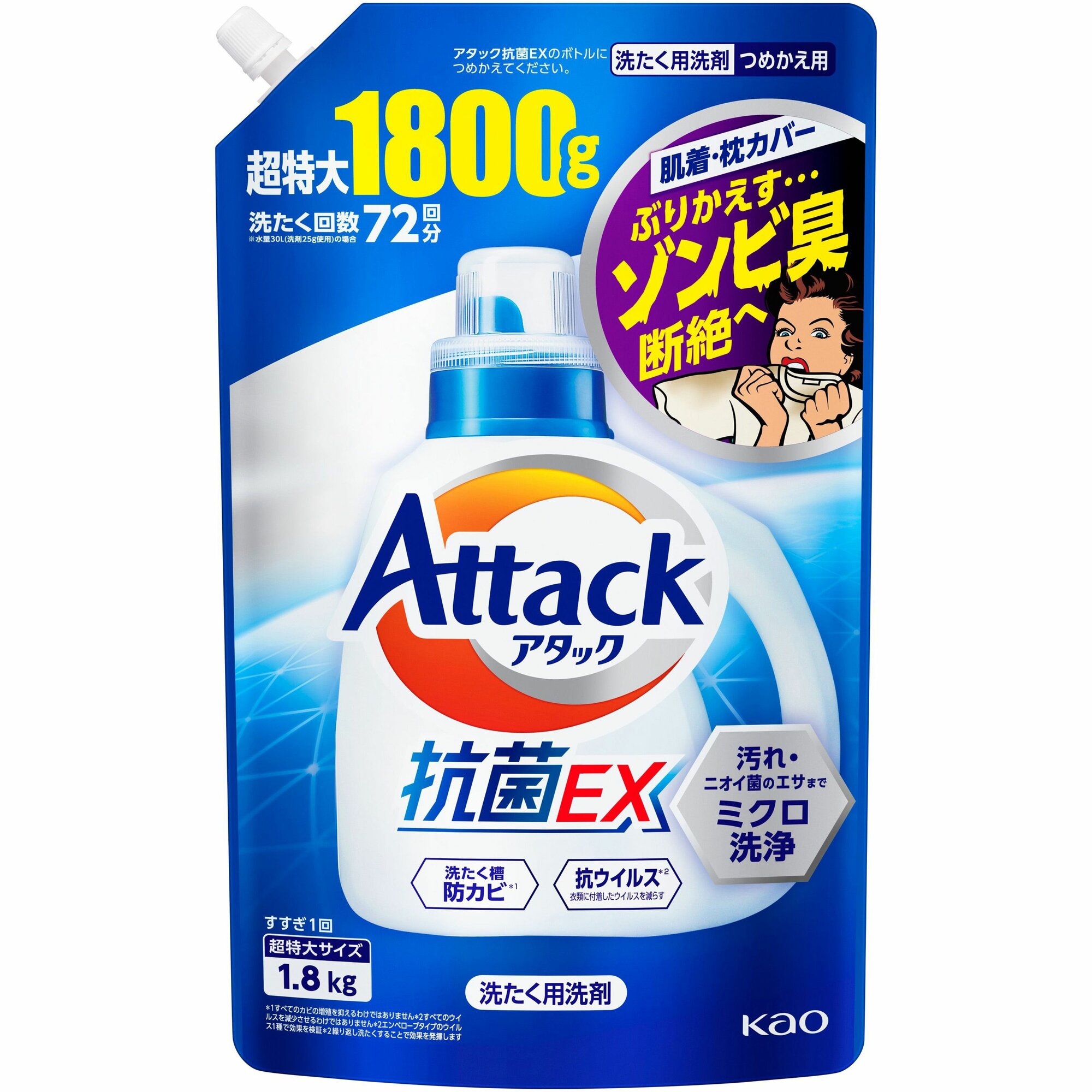 Купить KAO Гель для стирки белья Attack EX Multi-Action ВСЕ В одном Высокоэффективный многофункциональный антибактериальный для сушки в помещении, аромат свежести, 1800 гр. сменная упаковка с крышкой