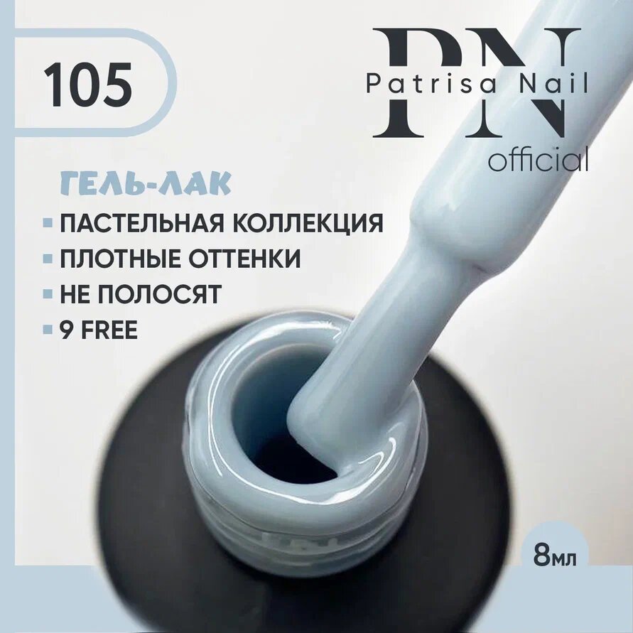 Гель-лак Patrisa Nail №105 Gelato GP05 Пастельный серый, 8 мл