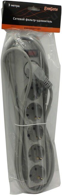 Сетевой фильтр ExeGate (sp-6-3g Gray) (3м) ( 6 розеток ) .