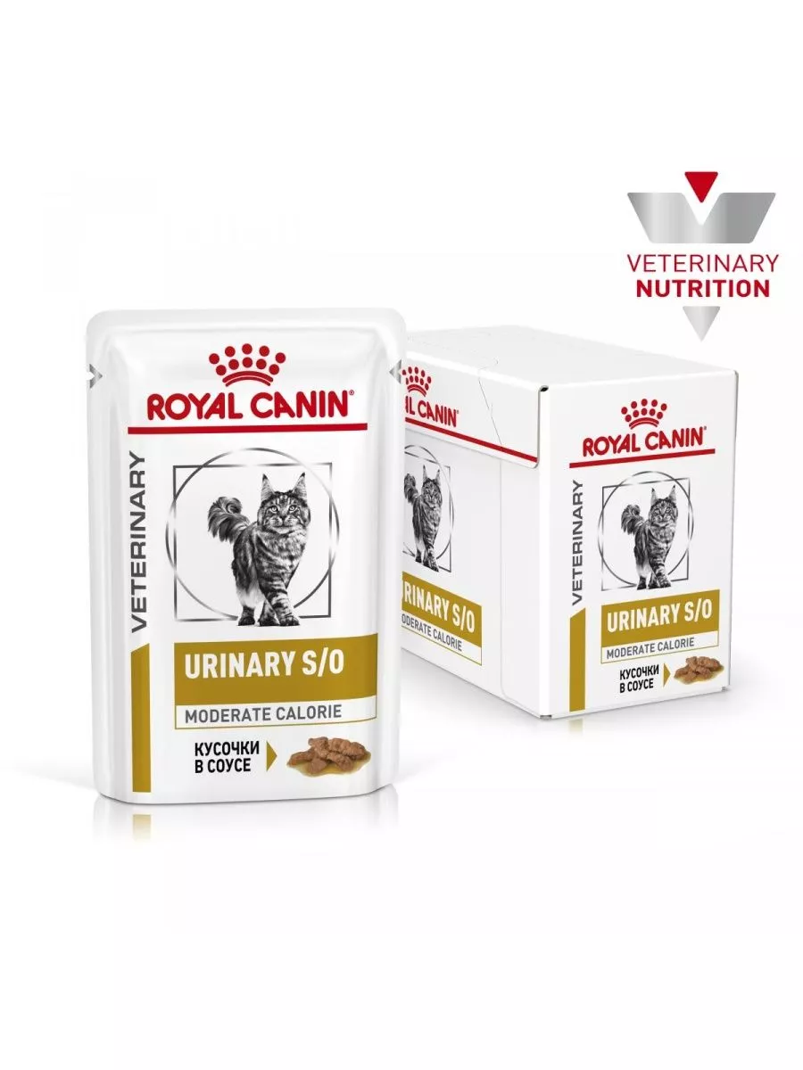 Купить Влажный корм для кошек Royal Canin Urinary S/O Moderate Calorie, для лечения МКБ, 12 шт. х 85 г (кусочки в соусе)