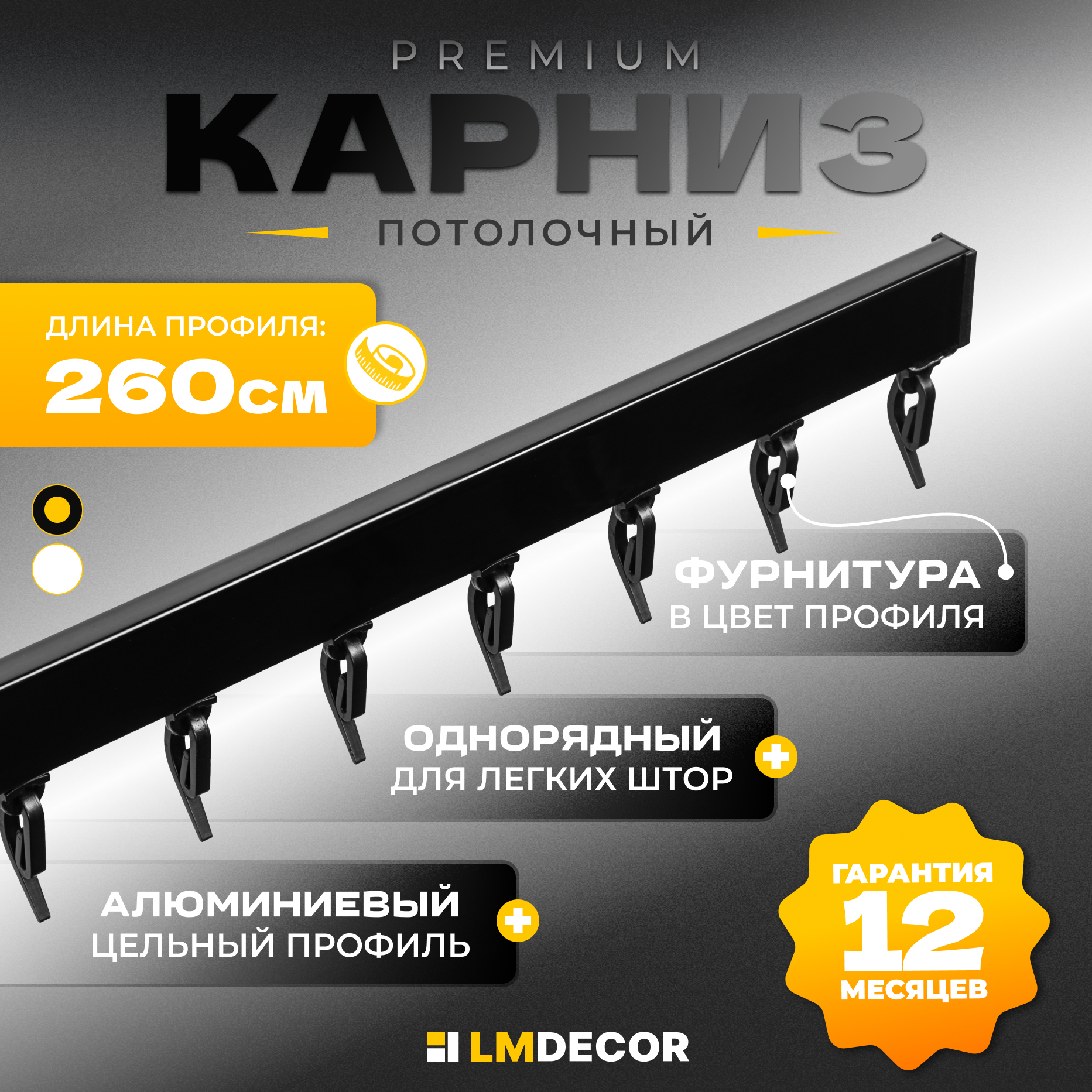 СохранитьКарниз для штор D2 алюминиевый однорядный потолочный 260 см Черный LM DECOR интересное: