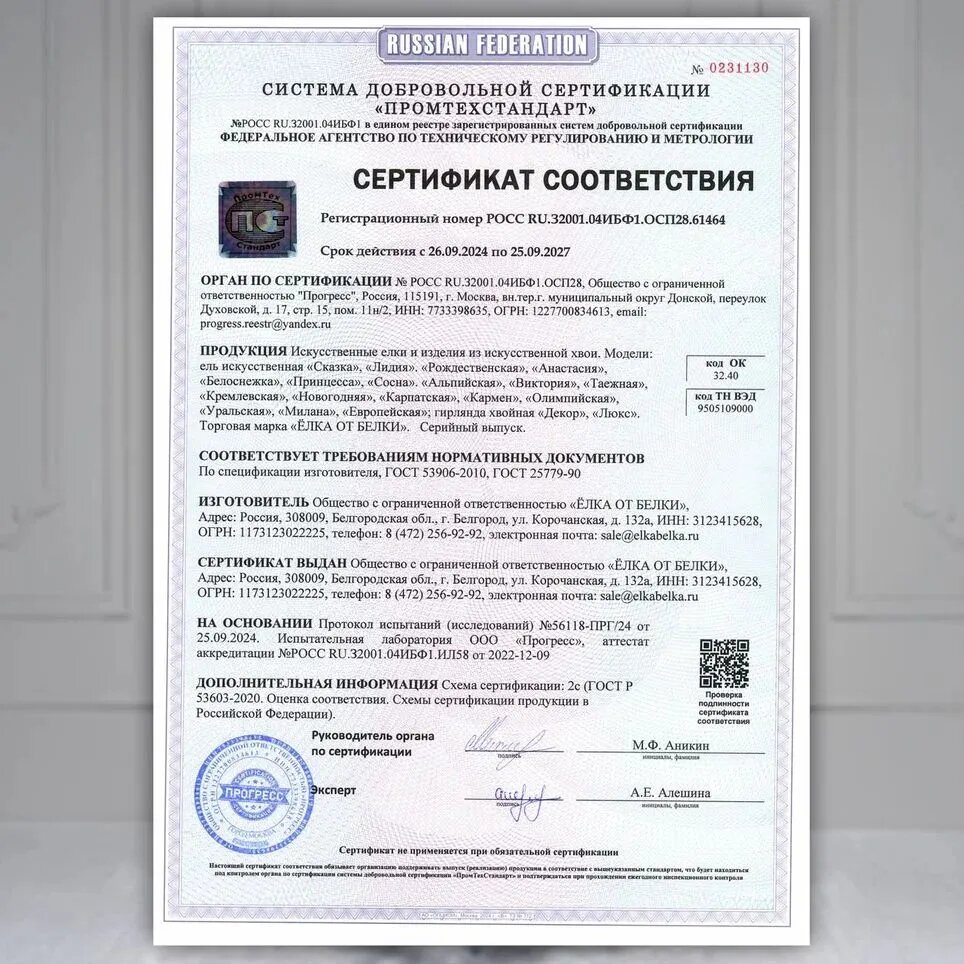 | Отзыв: | Красивая пышная елка. Соответсвует описанию. Мы довольны |