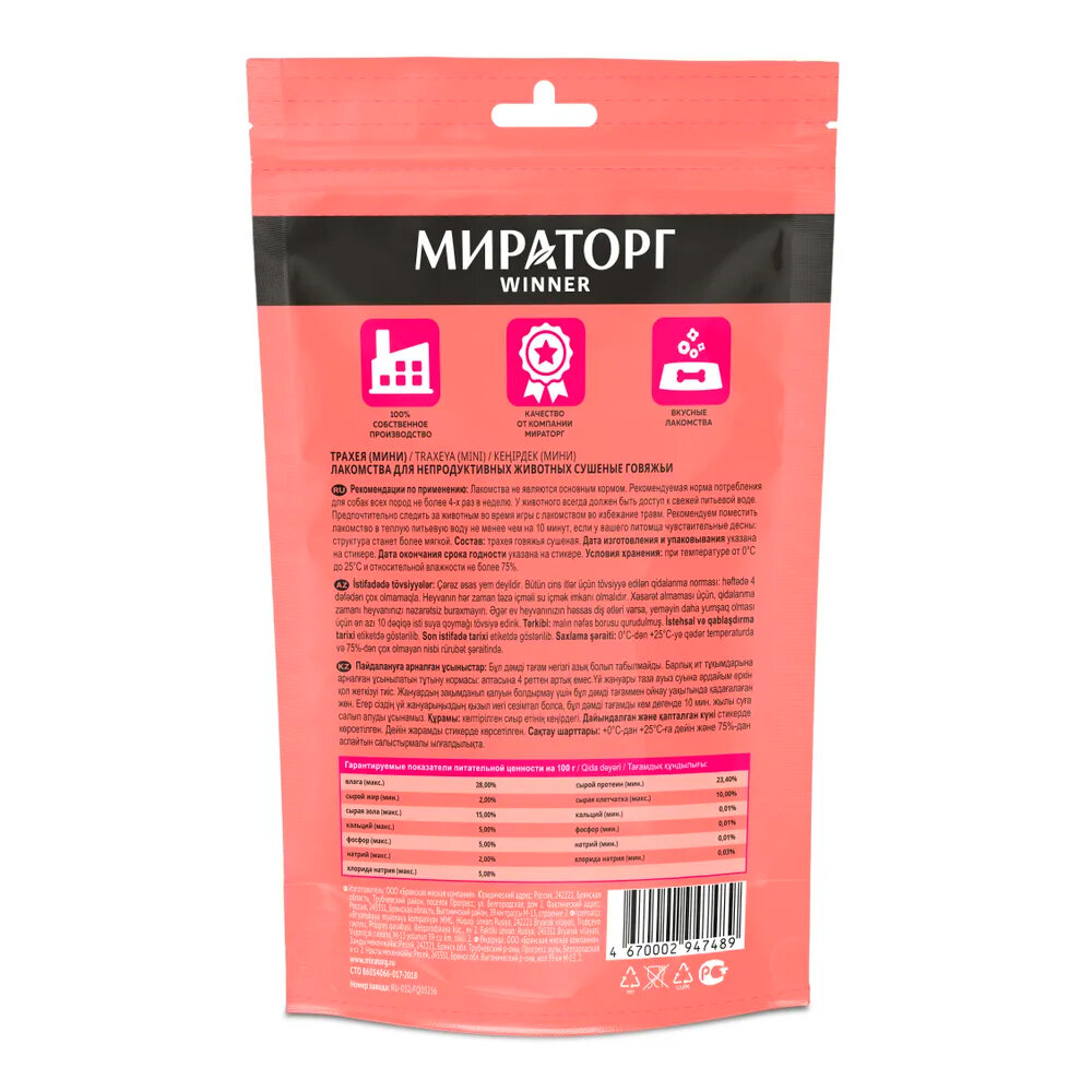 Мираторг Лакомство для собак трахея говяжья, 50 г, 2 уп