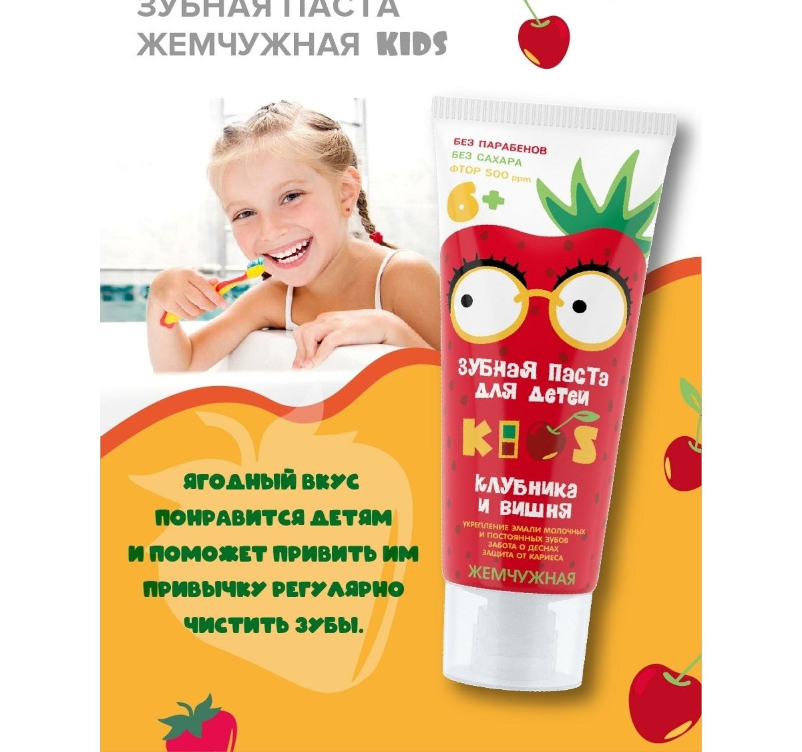 Зубная паста для детей 6+ Жемчужная Kids клубника и вишня 2 штуки по 60мл