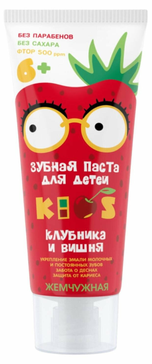 Купить Зубная паста для детей 6+ Жемчужная Kids клубника и вишня 60мл