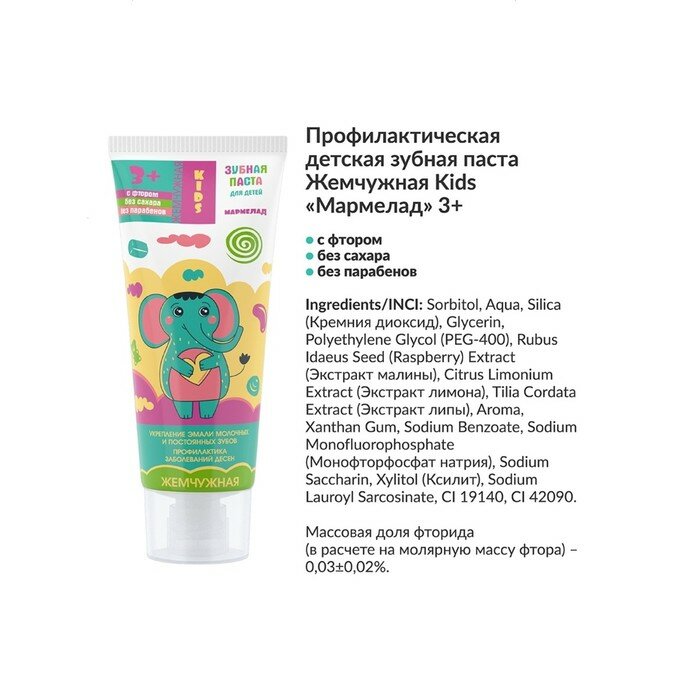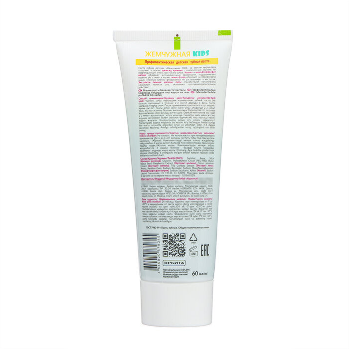 Купить Зубная паста детская Жемчужная Kids против кариеса Мармелад 60мл