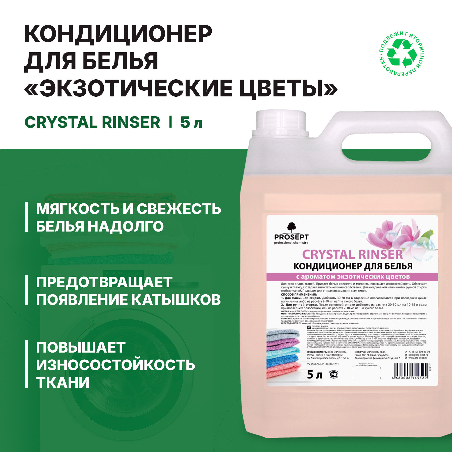 СохранитьКондиционер ополаскиватель для белья Prosept Crystal Rinser с ароматом экзотических цветов 5 л интересное: