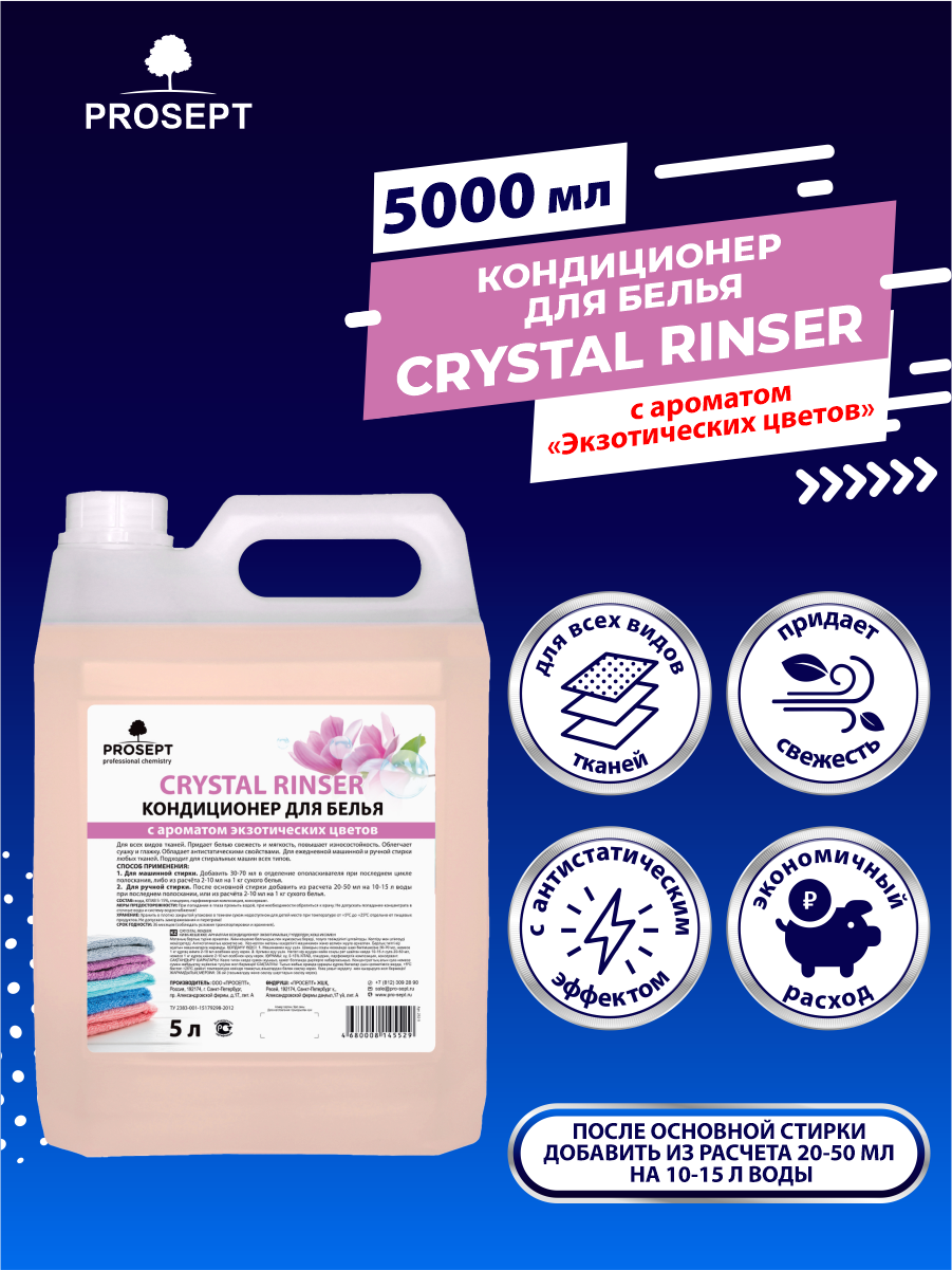 Кондиционер для белья Crystal Rinser с ароматом Экзотических цветов, концентрат, 5 л PROSEPT 4616587 .