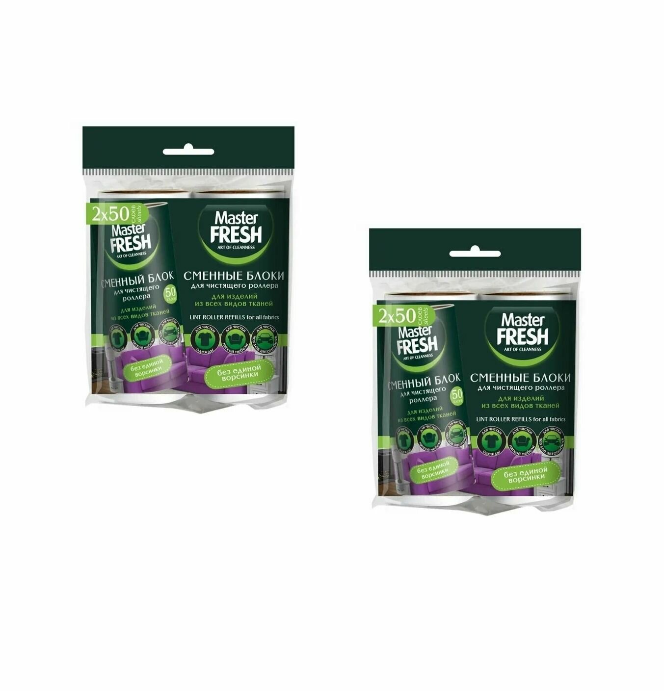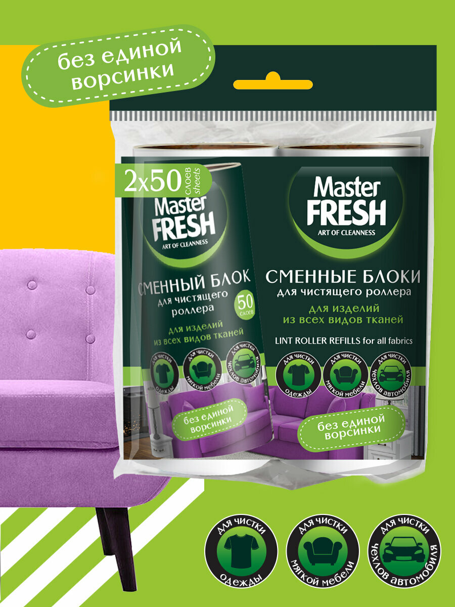 Сменные блоки для чистящего роллера-ролика, Master Fresh, 50 листов, 2 шт.