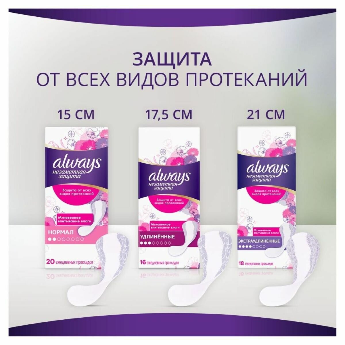 Always Прокладки ежедневные Незаметная защита Экстраудлиненные, 18 шт.