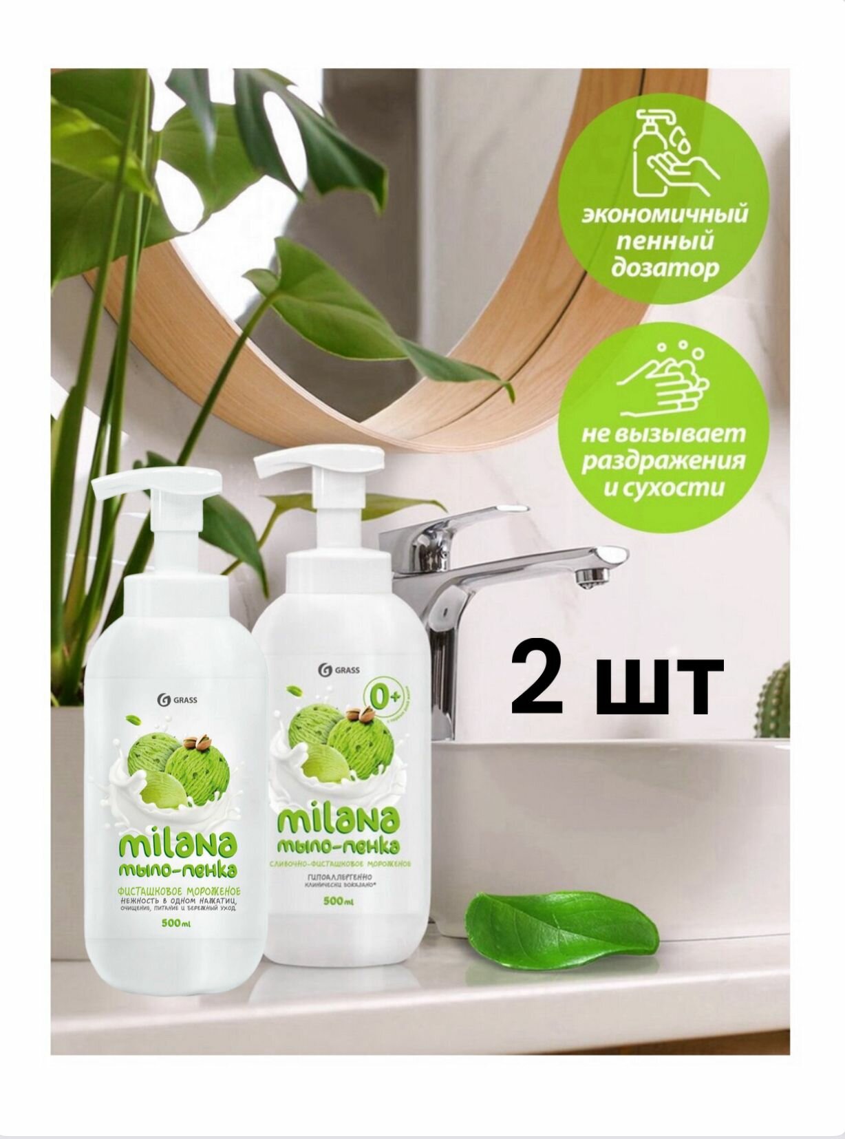 Купить GraSS "Milana" Жидкое мыло пенка сливочно-фисташковое мороженое, 500мл (2 шт.)