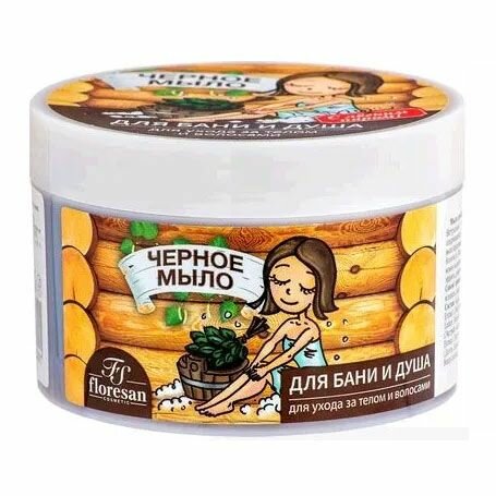Floresan Мыло для бани и душа, для ухода за телом и волосами натуральное таежное в банке "Зеленое" 450 мл - 2 штуки