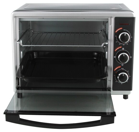 | Минусы: | Сильно греется задняя стенка. Отдельно нужно купить поддон для крошек. |