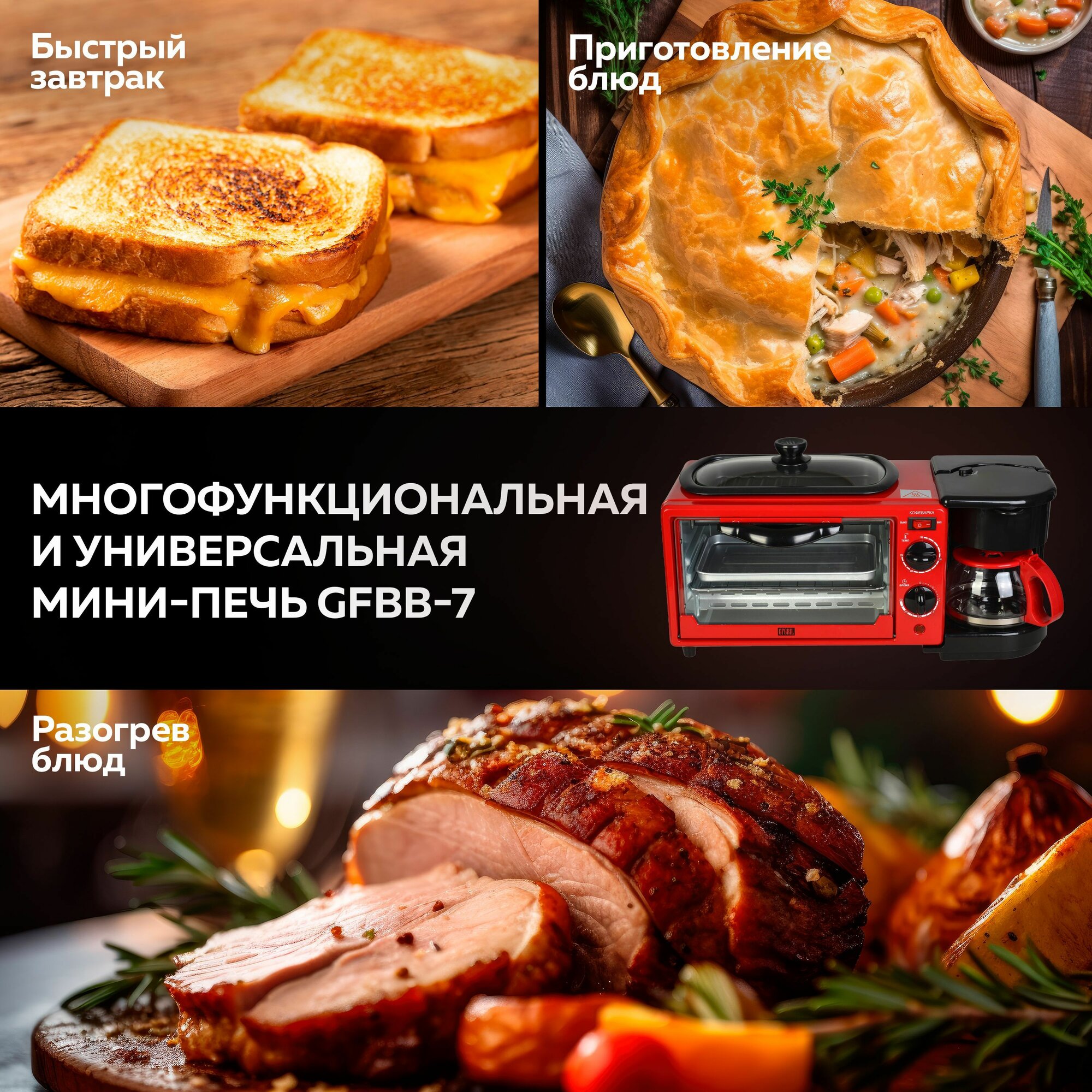 Купить GFGRIL Многофункциональная электрическая мини-печь 3 в 1 GFBB-7 Breakfast Bar