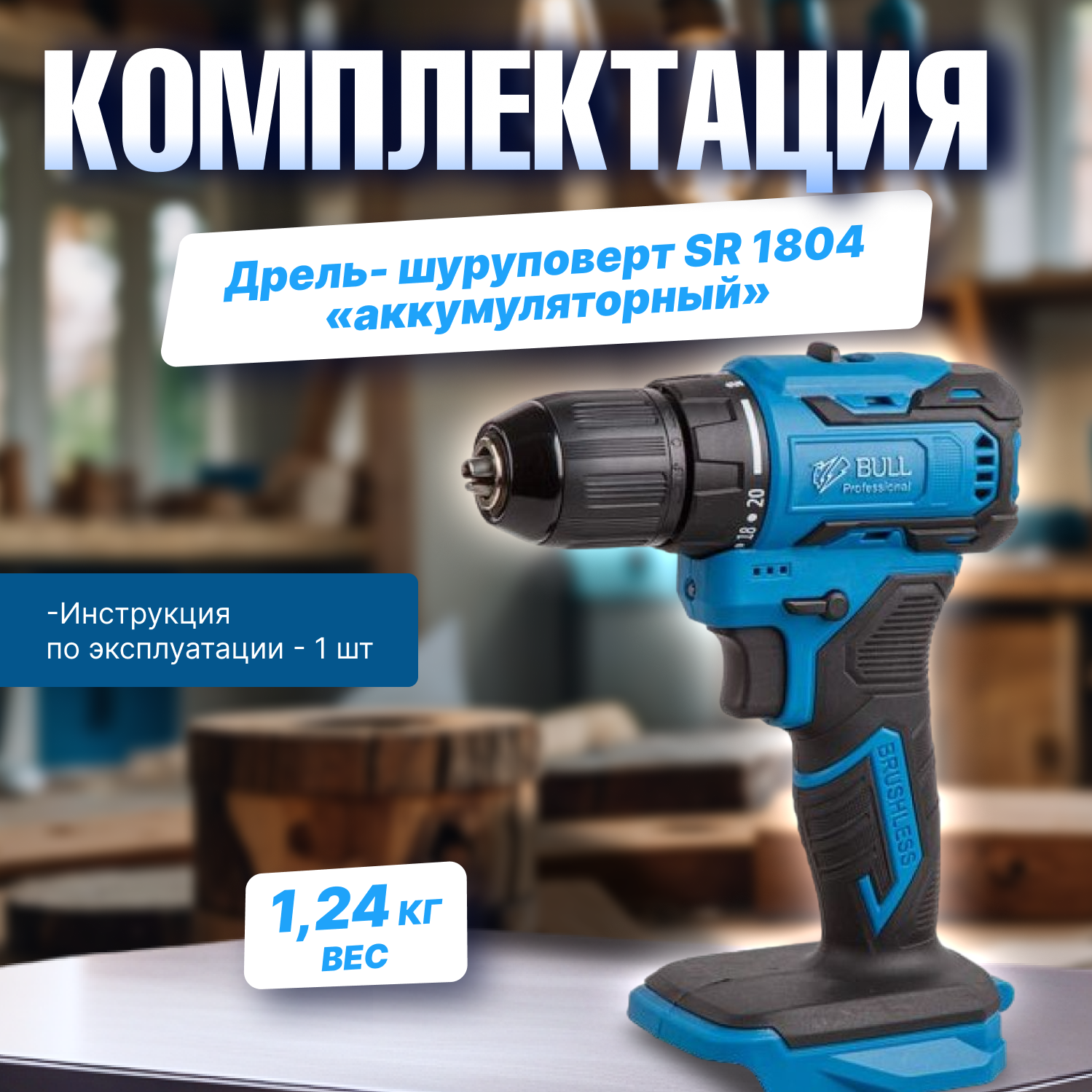 Дрель-шуруповерт аккумуляторная BULL SR 1804 (1329421)