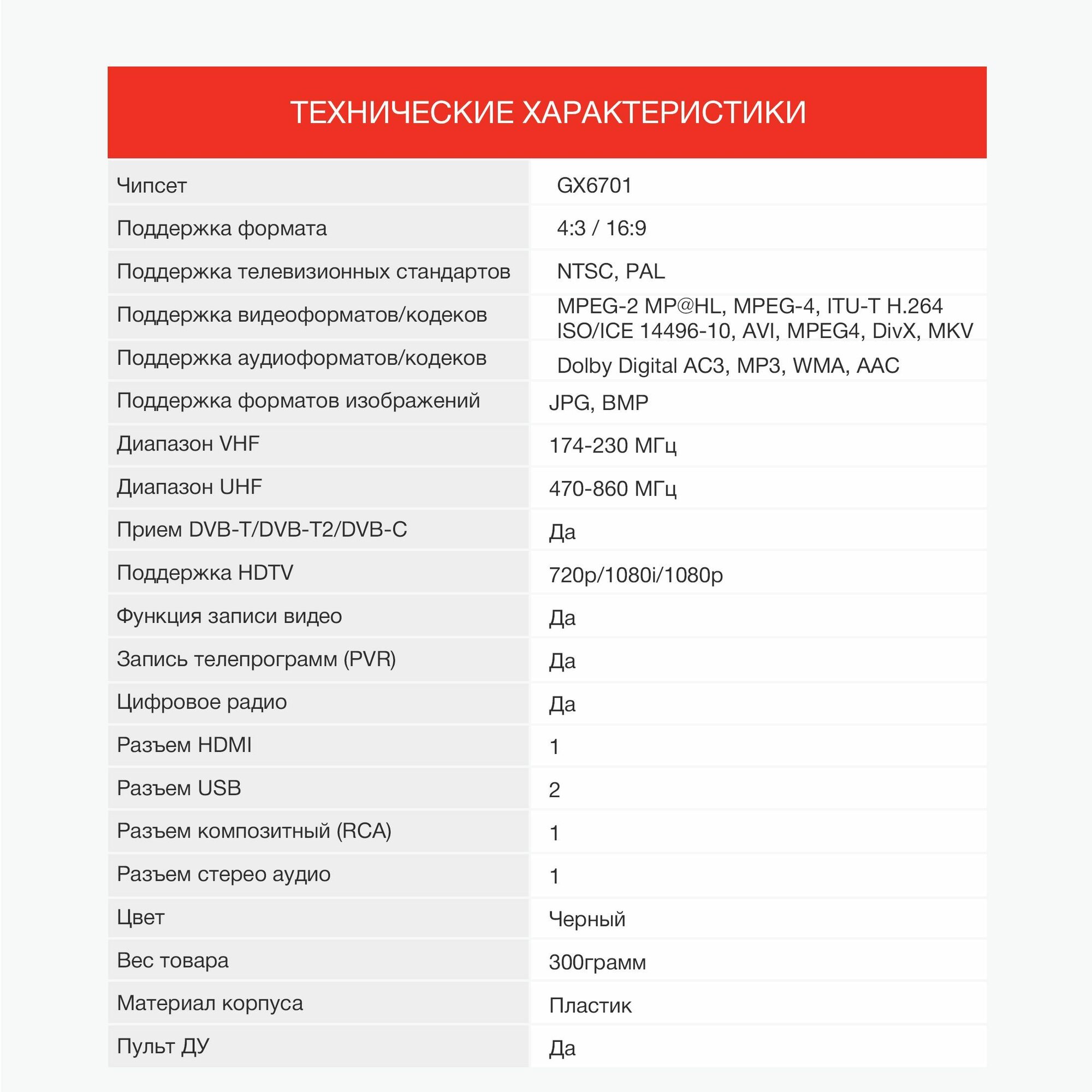 TV-тюнер DVB-T2 Starwind CT-140, черный