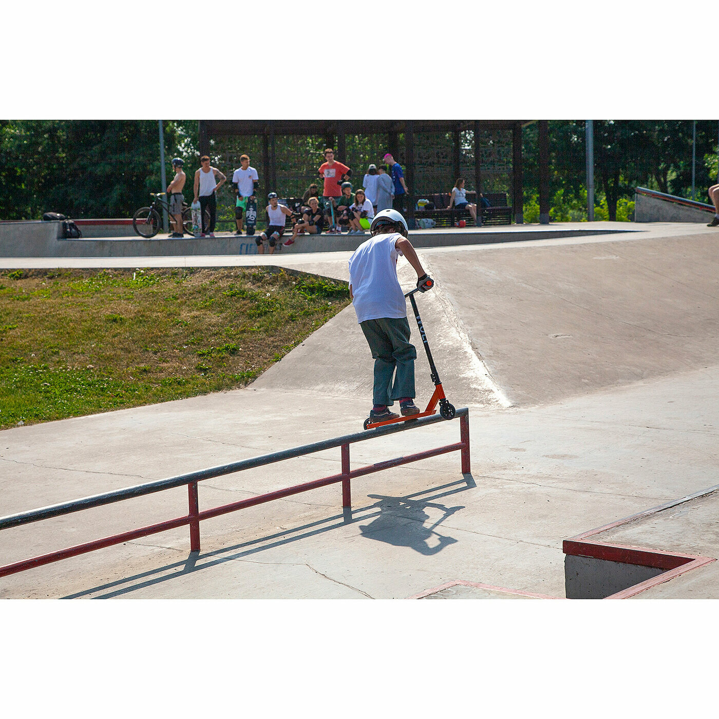 Самокат 2-х колесный 110 мм Трюковый детский Novatrack Wolf алюминиевый не складной 100 кг оранжевый 110P.WOLF.BOR9