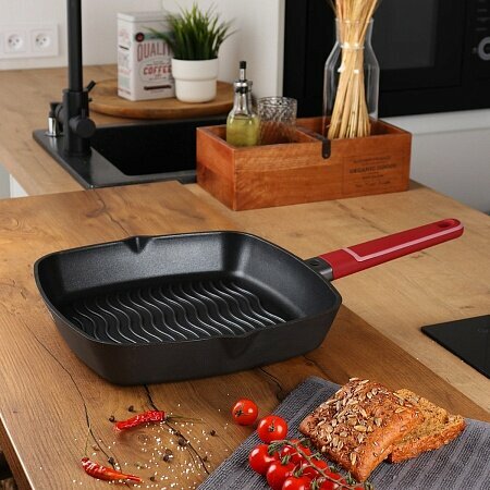 | Плюсы: | Толстые стенки, высокие бортики, а самое главное - съемная ручка. Можно использовать в духовом шкафу, легко моется в посудомоечной машине. |